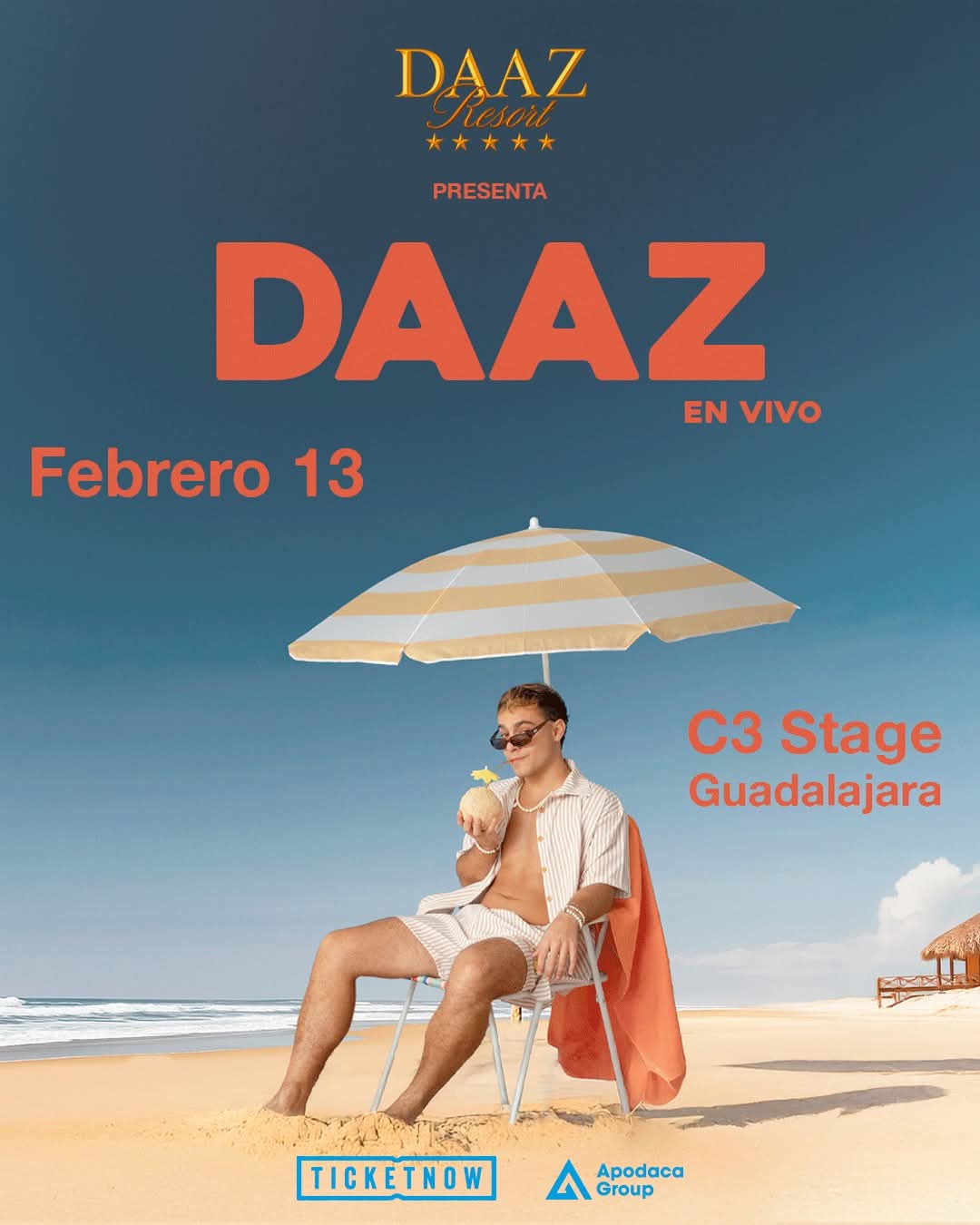El 2026 nos comienza a sorprender con la revelación de próximos shows, uno de ellos será el 13 de Febrero en las instalaciones del C3 Stage. El artista mexicano, DAAZ visitará Guadalajara con su gira “DAAZ Resort”, un concepto inspirado en lo cálido del verano y el ambiente caribeño.