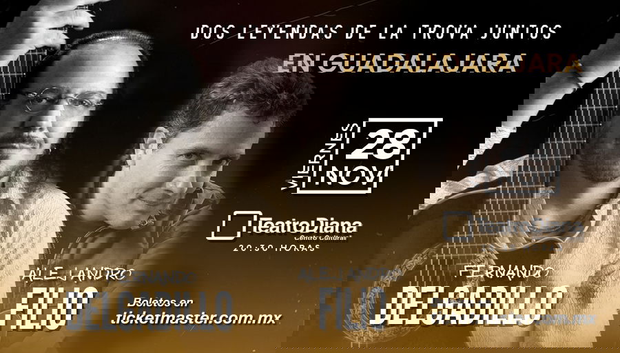 El próximo viernes 28 de noviembre de 2025, el corazón de Guadalajara latirá al ritmo de la trova, la canción de autor y la poesía hecha música, pues el emblemático Teatro Diana abrirá sus puertas para recibir a dos gigantes del género: Fernando Delgadillo y Alejandro Filio.